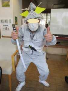 レクリエーションでは、折り紙で作った“兜釣り”を行いました♪